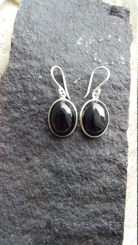 Natural Black Onyx Earrings, 925 Sterling Silver Dangle Earrings, Cabochon Onyx, Handmade Jewelry, Gift Idea, Black Stone Earrings for Her