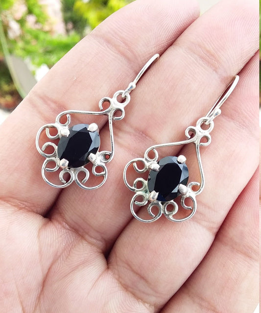 Black Onyx Earrings, 925 Sterling Solid Silver Earrings, Gift for Her, Gemstone dangle earrings, Women Earring, Anniversary Gift, Jewelry