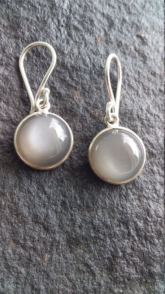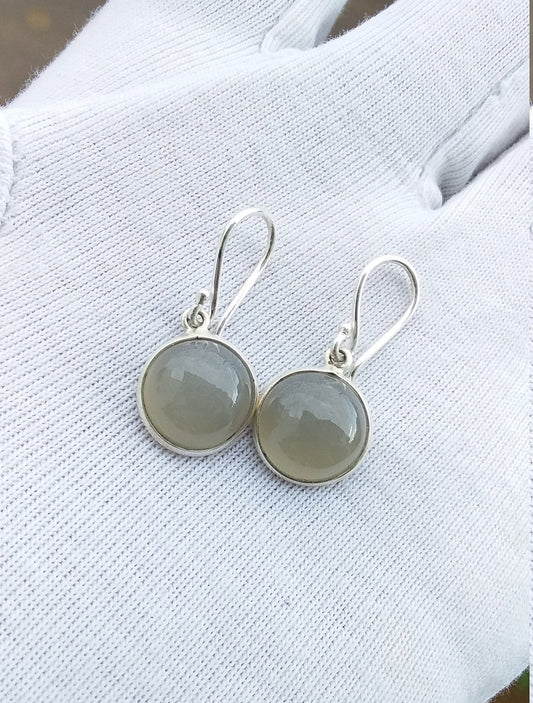 Gray Moonstone Earrings, 926 Sterling Silver, Round Shape Drop & Dangle Earrings, Healing Moonstone Jewelry, Everyday Earrings for Her