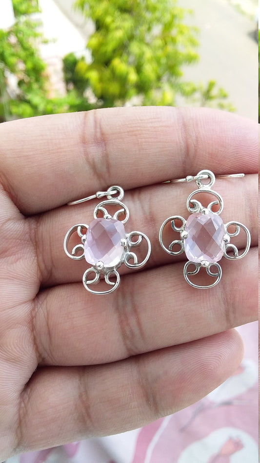 Natural Rose Quartz Earrings, Sterling Silver Quartz Handmade Earrings, Rose Quartz Handmade Jewelry,