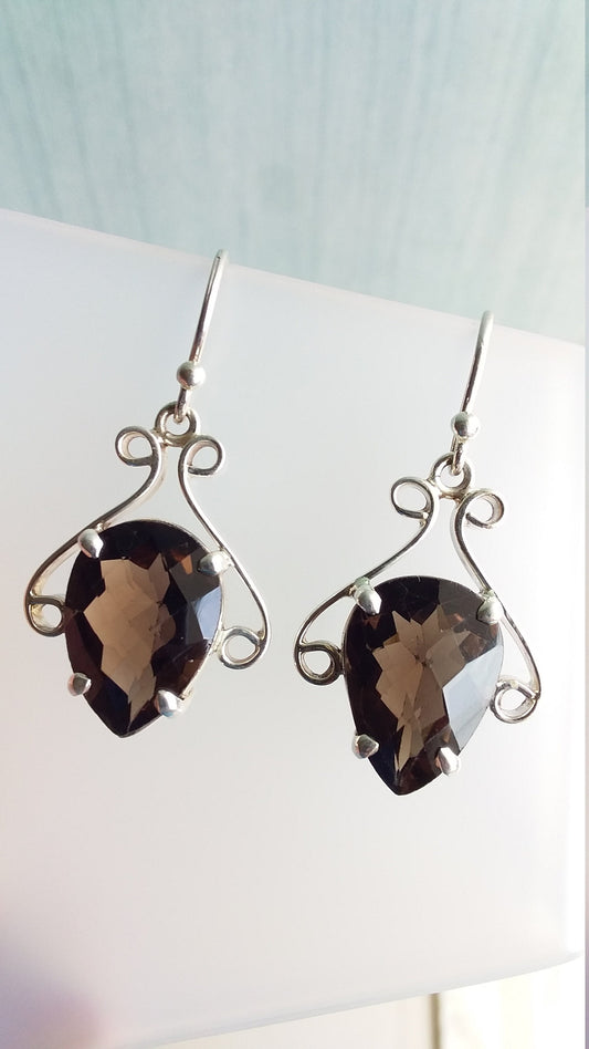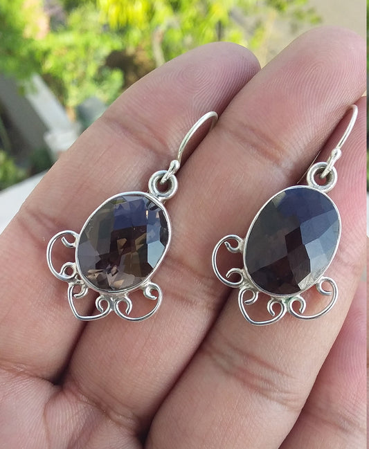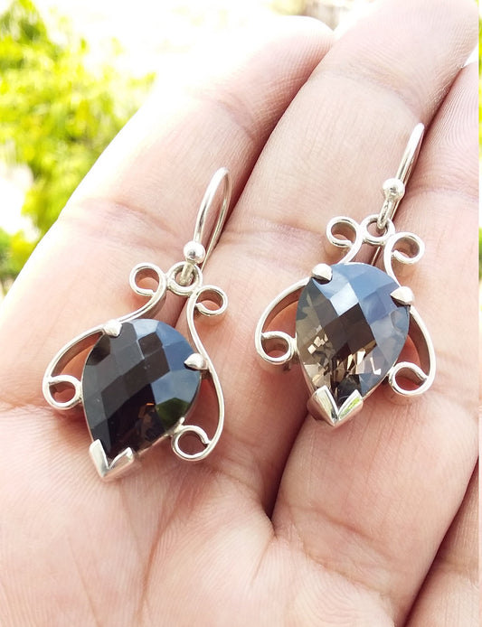 Smoky Quartz Earrings, 925 Sterling Silver Smoky Quartz Handmade Vintage Earrings, Drop & Dangle Smoky Quartz Earrings