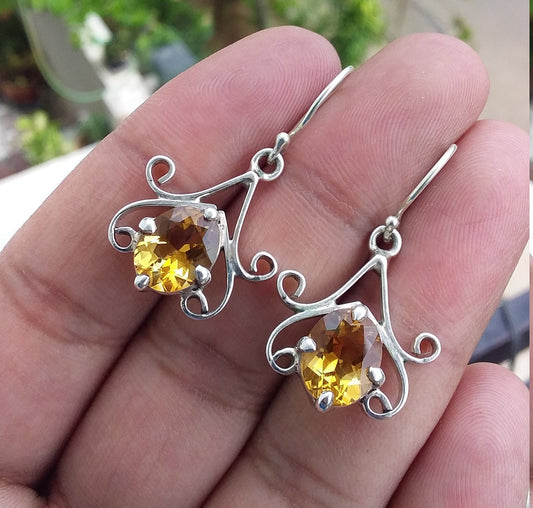 Citrine Earrings, 925 Sterling Silver Earrings, Handmade Silver Jewelry, Gift for her, Yellow Stone Earrings, November Birthstone Earrings
