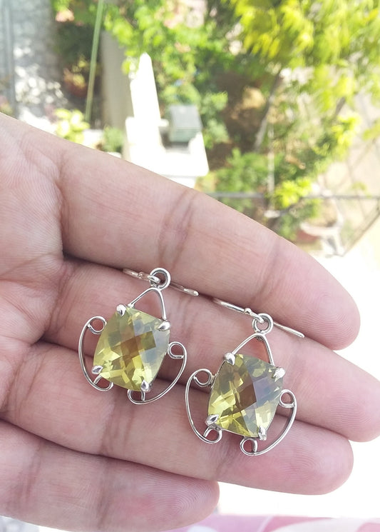 Lemon Quartz 925 Sterling Silver Earring, Drop & Dangle Earrings, Yellow Gemstone Earrings, Quartz Handmade Earrings,