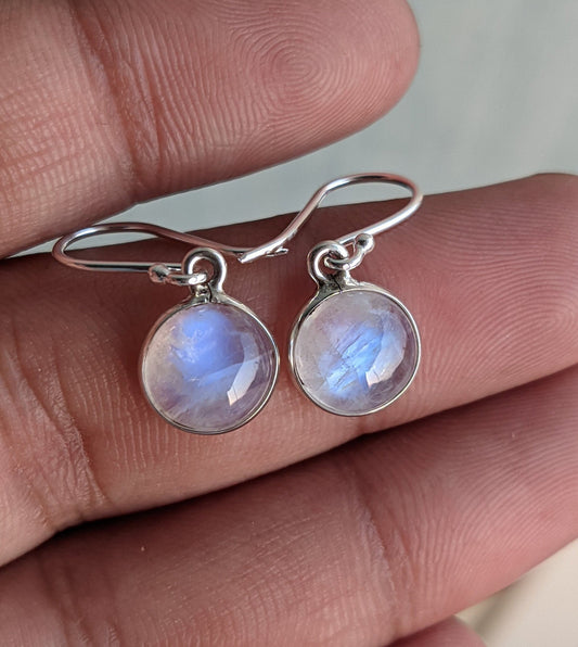 Rainbow Moonstone Earrings, Handmade Silver Earring, Blue Flash Moonstone, Daily Wear Earring, Gift for Her, Hook Earring, Moonstone Jewelry