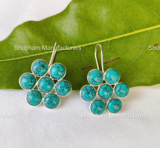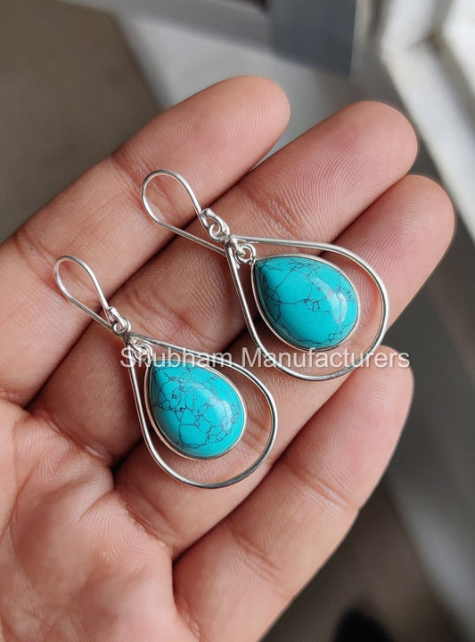 Turquoise Earrings, 925 Sterling Silver Earrings, Turquoise Drop Earrings, Blue Gemstone Earrings, Unique Design Earrings, Wedding Earrings