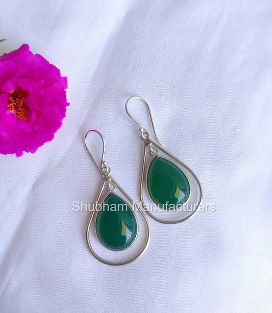 Natural Green Onyx Earrings, 925 Sterling Silver Earrings, Dangle Drop Gemstone Earrings, May Birthstone, Green Stone Jewelry Bridal Jewelry
