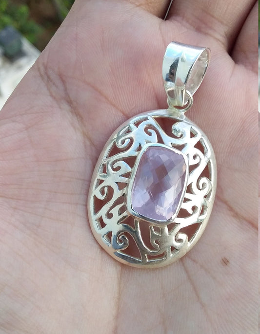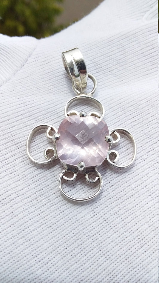 Natural Rose Quartz Silver Pendant, Faceted Gemstone Necklace, Jewelry for Women, Handmade Pendant, Gift For Her, Daily Wear Jewellery