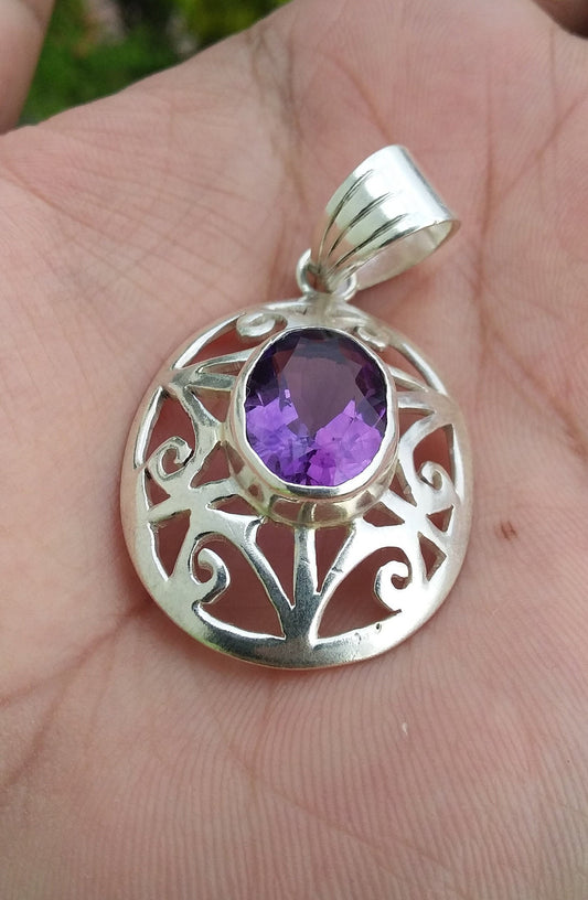 Purple amethyst pendant, Healing Stone, February Birthstone Pendant, Solid 925 Silver Pendant, Silver Amethyst Pendant, gemstone jewellery