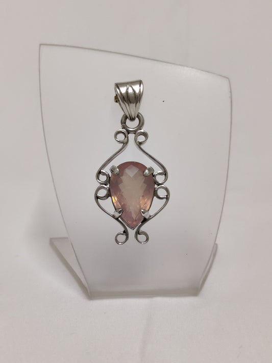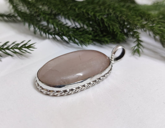 Natural Rose Quartz 925 Sterling Silver Handmade Pendant, Natural Rose Quartz Pendant, Vintage Style Pendant