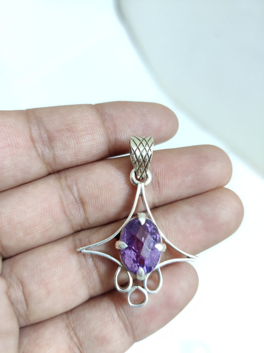 Purple Amethyst Pendant, 925 Silver Handmade Pendant, Purple Quart Jewelry, Amethyst Crystal Necklace, Perfect gift for Her