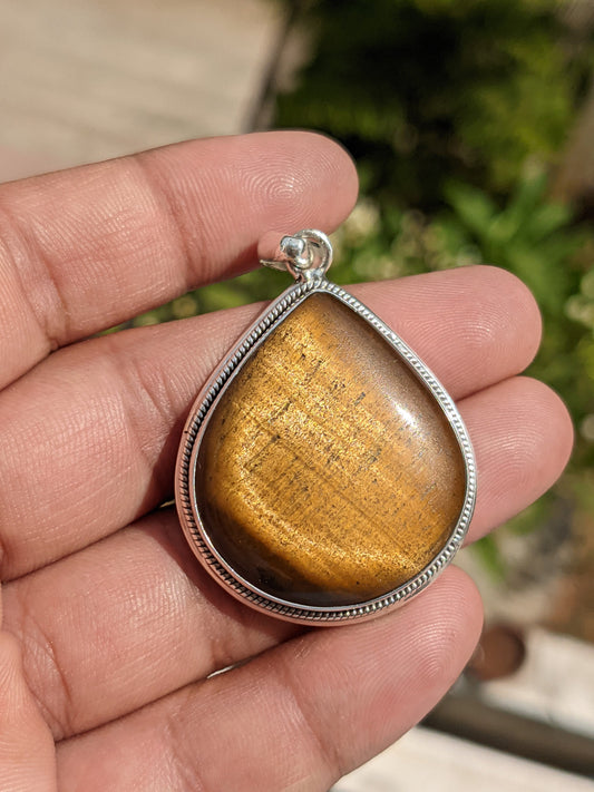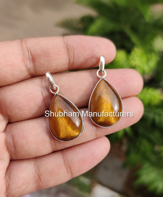 Tiger Eye Pendant, Teardrop Shape Natural Tigers Eye Pendant, 925 Sterling silver necklace pendant, Healing Stone, Handmade Gemstone Jewelry