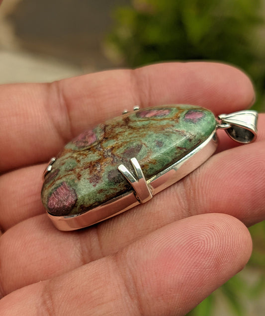 Ruby Zoisite Pendant-Natural Gemstone Pendant-Ruby in Zoisite Jewelry-Silver Gemstone Pendant- Healing Crystal Pendant-Gift for Her