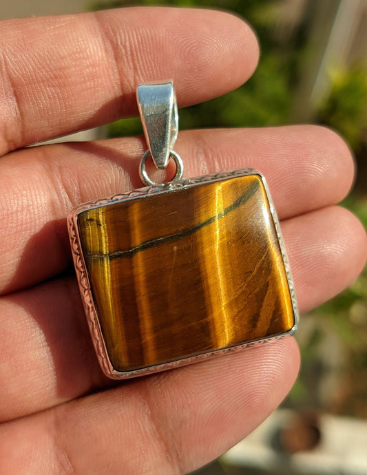 Tiger Eye Pendant, 925 Sterling Silver Gemstone Pendant, Tiger's Eye Jewelry, Healing Crystal Pendant, Handmade Gift for Her, Unisex Pendant