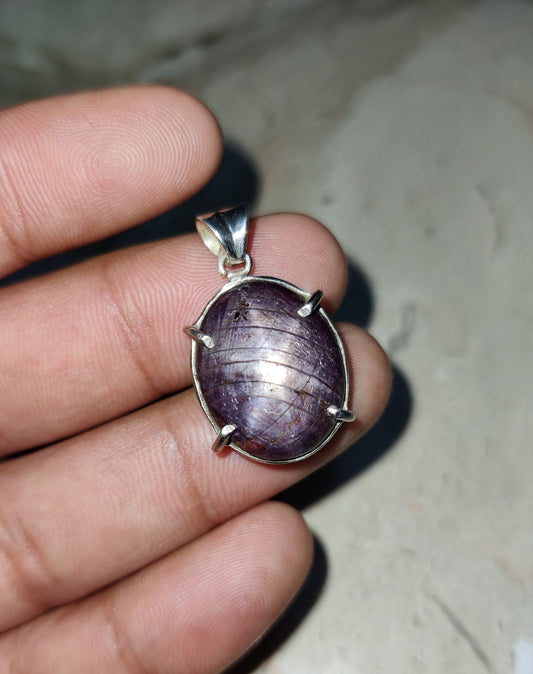 Natural Star Ruby Pendant, 925 Sterling Silver Jewelry, Star Ruby Cabochon, Ruby Star Jewelry, Oval Cabochon Pendant, Birthstone Pendant