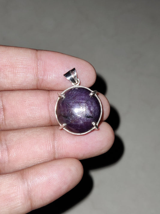 Natural Star Ruby Pendant, 925 Sterling Silver Jewelry, Star Ruby Cabochon, Ruby Star Jewelry, Round Cabochon Pendant, Birthstone Pendant