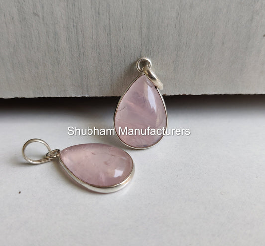 Natural Rose Quartz Pendant, 925 Sterling Silver Pendant, Pink Gemstone Necklace, Bridal Gift for her, Healing Crystal Pendant, Wedding Gift