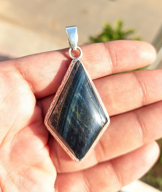 Black Tigers Eye Pendant, 925 Sterling Silver, Natural Stone Pendant, Cabochon Gemstone, Tiger's Eye Jewelry, Unisex Designer Jewelry,