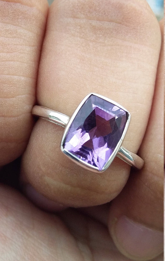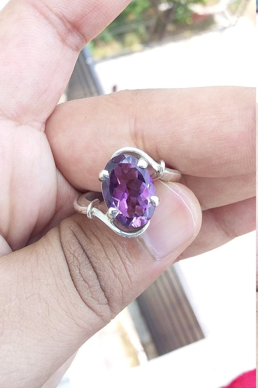 Purple Amethyst Ring, Natural Gemstone Unisex Ring, 925 Sterling Silver Handmade Ring, Fancy Party Wear Birthstone Ring, US Ring Size 6 1/2