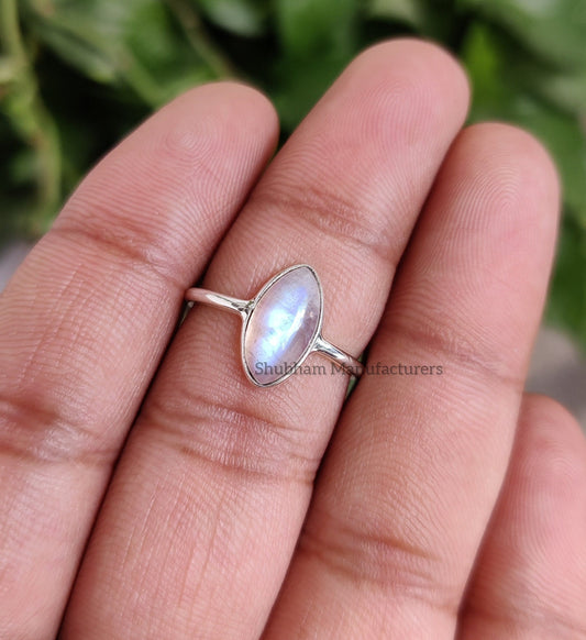 Rainbow Moonstone Ring, 925 Sterling Silver Ring, Blue Fire Moonstone Ring, Silver Moonstone Jewelry, June Birthstone Ring, Promise Ring
