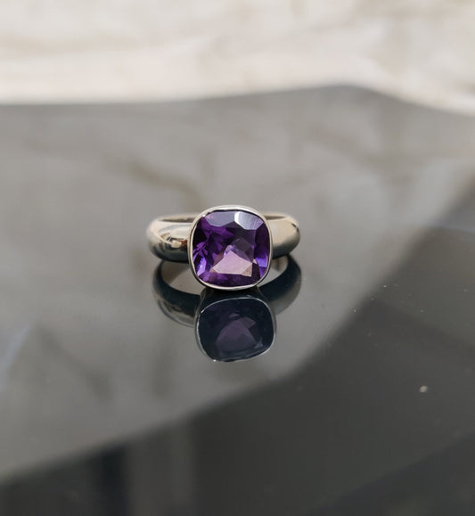 Amethyst Ring, 925 Sterling Silver Ring, Purple Amethyst Jewelry, Natural Gemstone Ring, Birthstone Gift for Her, February Birthstone Ring
