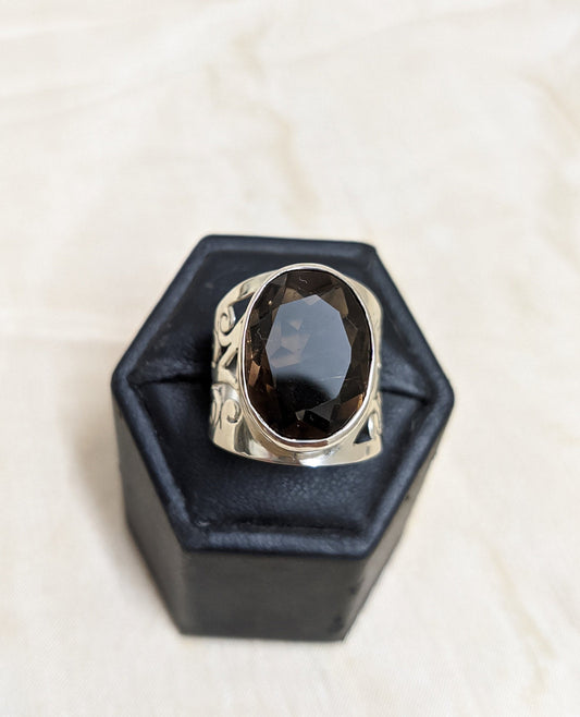 Natural Smoky Quartz Ring, 925 Sterling Silver Quartz Gemstone Ring, June Birthstone Ring, Smoky Quartz Jewelry, Healing Stone Ring Size 9