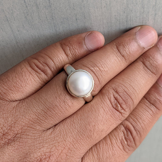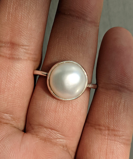 White Pearl Ring, 925 Solid Sterling Silver Ring, Cabochon Pearl Jewelry, Rings for Women, June Birthstone Ring, Handmade Gift for Her