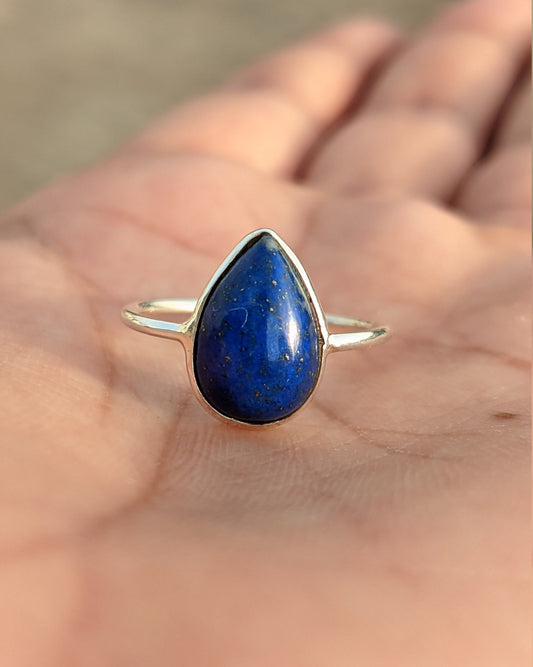 Lapis Lazuli Ring, 925 Sterling Silver, Natural Pear Cabochon Gemstone, Blue Lapis Handmade Jewelry, Gemstone Silver Ring, Gift for Her