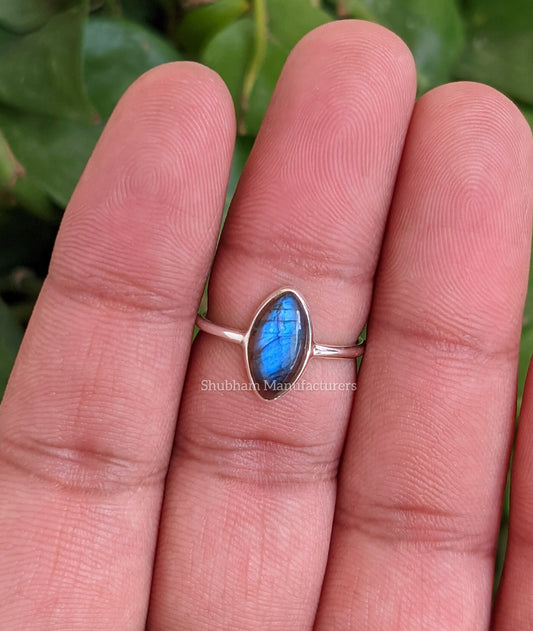 Labradorite Ring, 925 Sterling Silver Ring, Blue Flash Stone Ring, Silver Dainty Ring, Natural Gemstone Ring, Simple Everyday Ring for Her