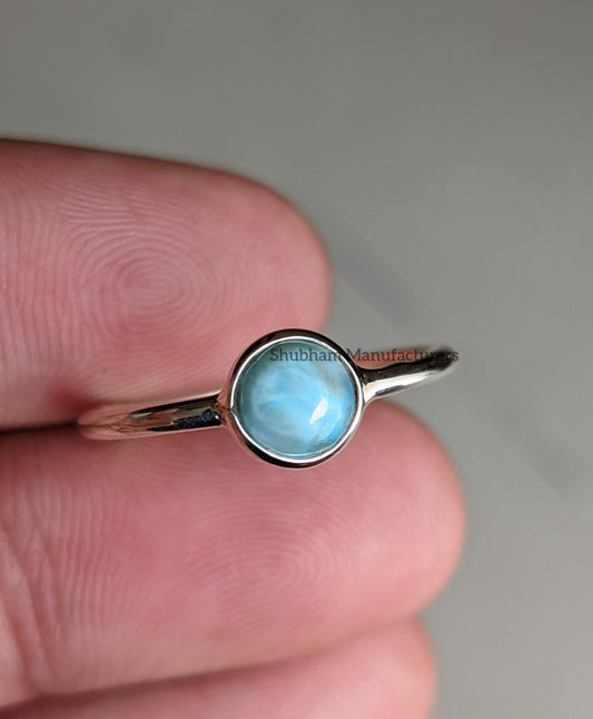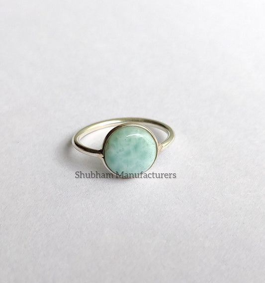 Natural Larimar Ring, 925 Sterling Silver Ring, Blue Gemstone Ring, Tiny Dainty Ring, Handmade Gift for Her, Larimar Jewelry for Women