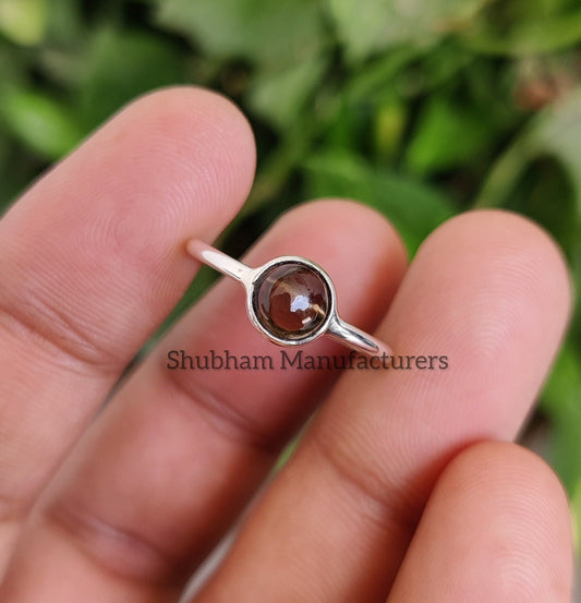 Natural Smoky Quartz Ring, 925 Sterling Silver Ring, Tiny Gemstone Ring, Minimalist Quartz Ring, Smoky Quartz Jewelry, Handmade Gift for Her