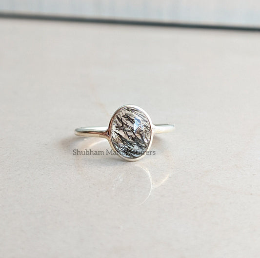 Black Rutile Quartz Ring, 925 Sterling Silver Ring, Natural Rutilated Quartz Ring, Silver Bohemian Ring, Birthstone Ring, Handmade Jewelry