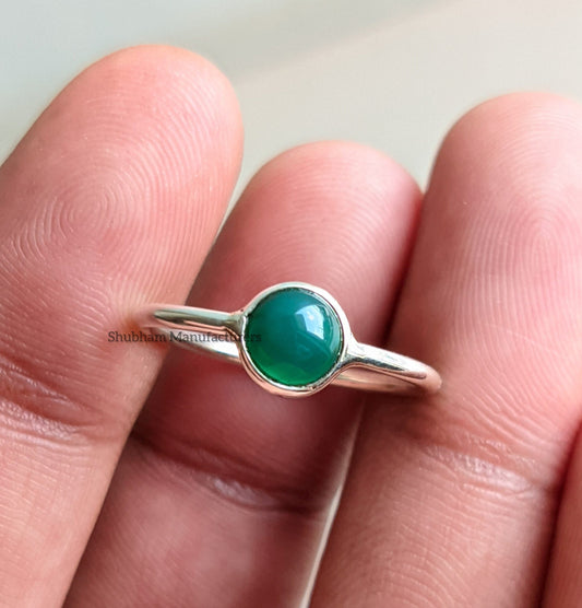Natural Green Onyx Ring, 925 Sterling Silver Ring, Green Stone, Cabochon Gemstone Stacking Ring, Dainty Silver Ring, Women's Minimalist Ring