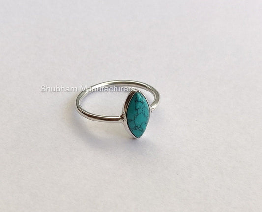 Turquoise Ring, 925 Sterling Silver Ring, Silver Turquoise Jewelry, Gemstone Ring, Simple Everyday Ring for Women, Handmade Marquise Ring