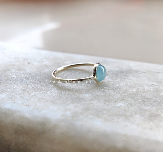 Aqua Chalcedony Ring, 925 Sterling Silver Ring, Blue Gemstone Jewelry, March Birthstone Ring, Dainty Minimalist Ring for Her, Handmade Gift