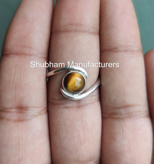 Tiger Eye Ring, 925 Sterling Silver Handmade Ring, Brown Gemstone, Designer Bypass Ring, Dainty Birthstone Ring, Tiger's Eye Jewelry for Her