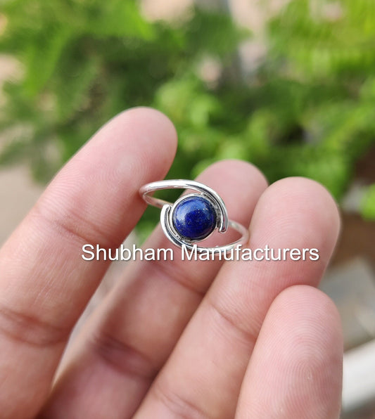 Genuine Lapis Lazuli Ring, 925 Sterling Silver Ring, Bypass Gemstone Ring, January Birthstone Ring, Blue Lapis Jewelry, Simple Everyday Ring