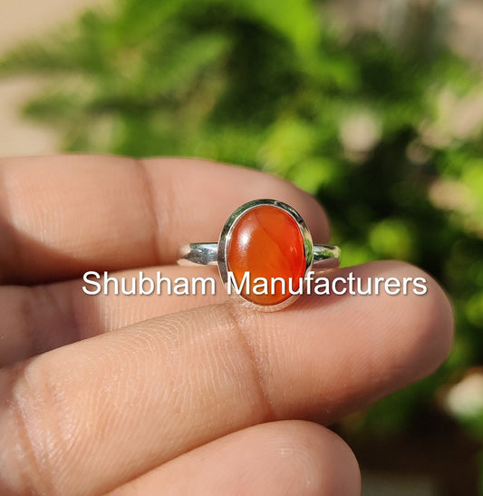 Natural Carnelian Ring, 925 Sterling Silver Ring, Orange Gemstone Ring, Promise Ring for Her, Modern Simple Everyday Ring, Anniversary Gift