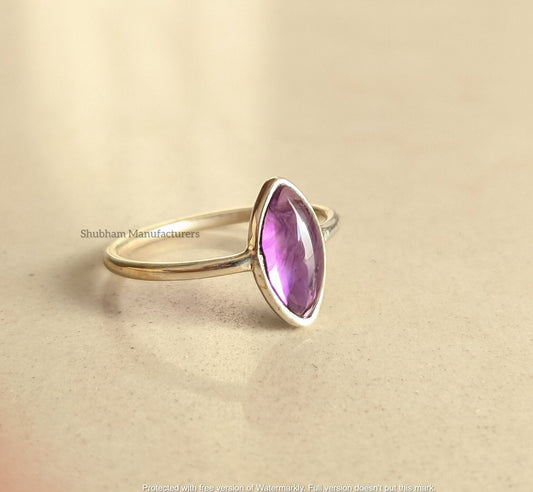 Natural Amethyst Ring, 925 Sterling Silver Ring, Purple Amethyst Jewelry, Cabochon Stone Ring, Marquise Gemstone, Birthstone Ring for Women