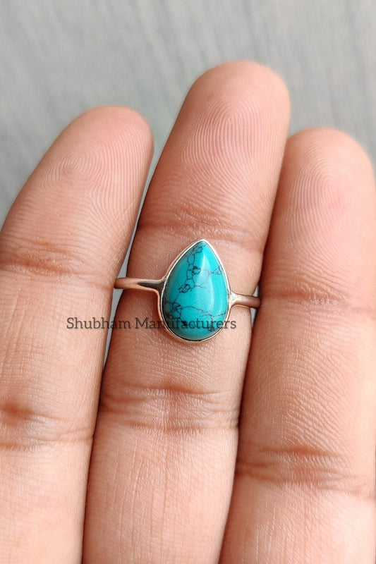 Genuine Turquoise Ring, 925 Sterling Silver Ring, Silver Turquoise Ring, Minimalist Turquoise Jewelry, Blue Gemstone Ring, Gift for Her