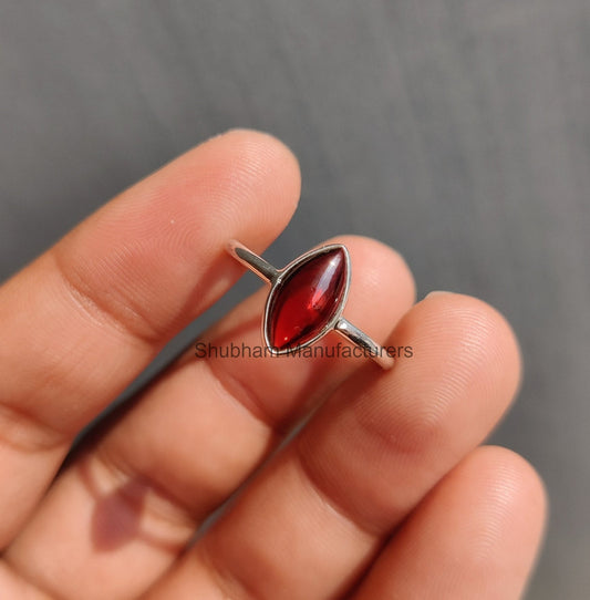 Natural Garnet Ring, 925 Sterling Silver Ring, Garnet Minimalist Ring, Dainty Gemstone Ring, January Birthstone Ring, Simple Ring for Women