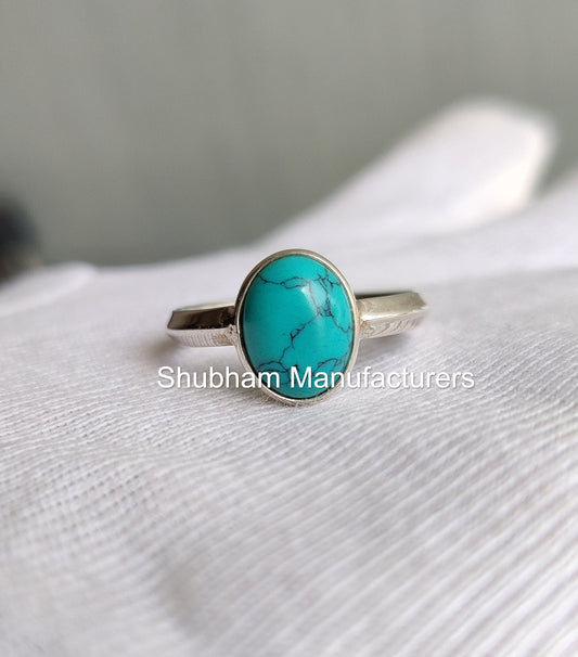 Genuine Turquoise Ring, 925 Sterling Silver Ring, Blue Turquoise Jewelry, Stacking Ring for Women, Natural Gemstone Ring,December Birthstone