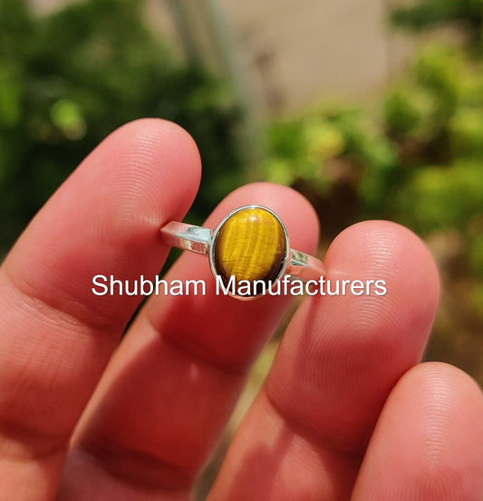 Tiger Eye Ring, 925 Sterling Silver, Tiger's Eye Silver Jewelry, Oval Gemstone, Unisex Ring, Birthstone Ring for Men and Women, Bezel Ring