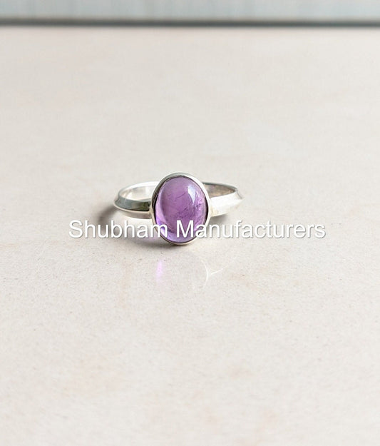 Natural Amethyst Ring, 925 Sterling Silver Ring, Purple Amethyst Jewelry, February Birthstone, Cabochon Gemstone, Healing Crystal for Her