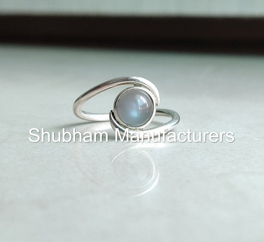 Gray Moonstone Ring, 925 Sterling Silver Ring, Handmade Designer Ring for Her, Natural Gemstone, Simple Everyday Bezel Ring, Bypass Shank