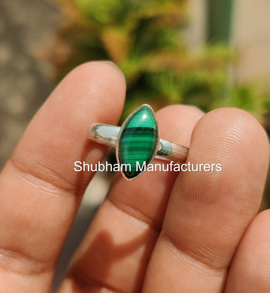 Natural Malachite Ring, 925 Sterling Silver Ring, Green Gemstone Ring, Taurus Birthstone, Daily Wear Stackable Ring, Handmade Gift for Her