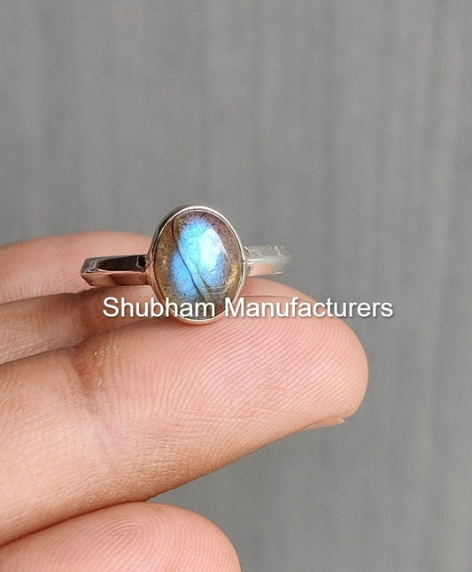 Labradorite Ring, 925 Sterling Silver Ring, Flashy Gemstone Ring, Simple Everyday Ring, Blue Fire Labradorite Jewelry, Dainty Ring for Her