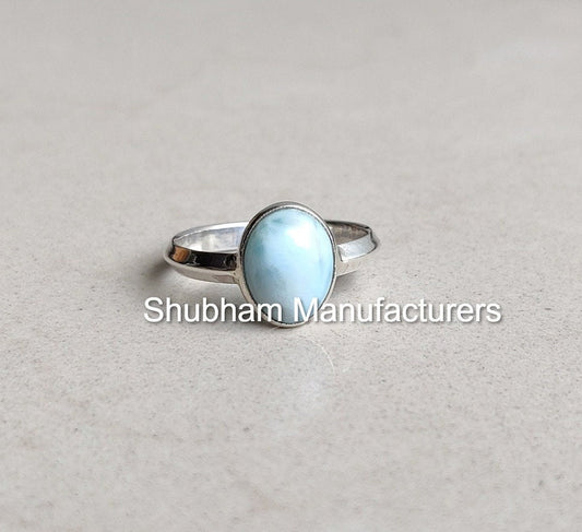 Natural Larimar Ring 925 Sterling Silver Knife Edge Band Ring, Blue Gemstone Ring, Birthstone Ring for Women, Handmade Jewelry for Her