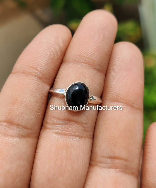 Black Onyx Ring, 925 Sterling Silver, Natural Gemstone, Stacking Onyx Ring, Black Crystal Stone, Onyx Jewelry, Cabochon Stone, Womens Ring