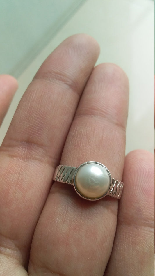 Pearl Ring, 925 Sterling Silver Ring, White Peal Jewelry, Promise Ring Jewelry, Cabochon Gemstone Ring, Gift for Her Ring size 7, 7.5, 8.5