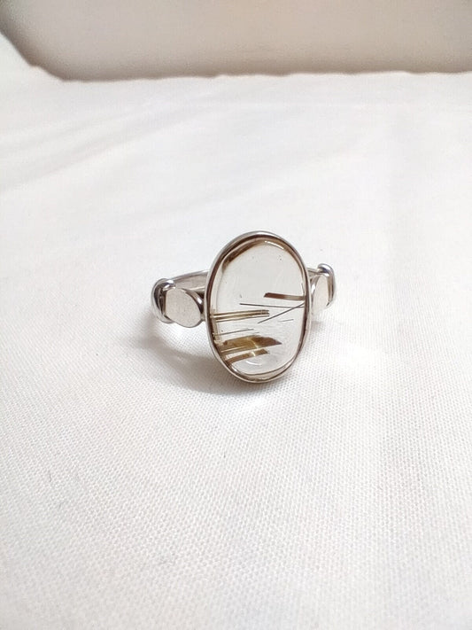 Golden Rutilated Quartz Ring, Rutile Quartz Ring, Natural Gemstone Ring, Cabochon Stone Ring, Handmade Gift for Her, 925 Sterling Silver
